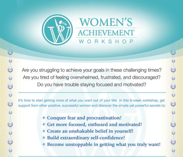 This workshop gave me the organization I needed. It helped me to put my goals on paper so I could see more clearly exactly what I wanted. It also gave me a sense of direction and success. I really believe my goals are going to happen.